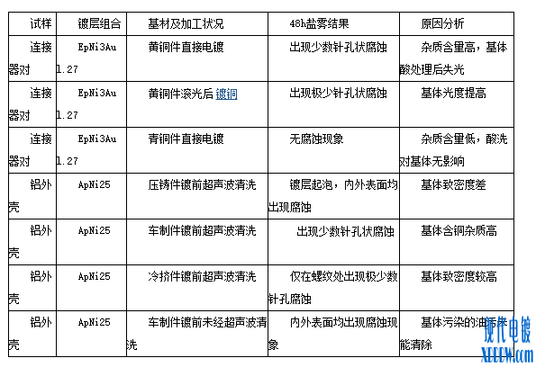 常用耐環境電連接器不同基體材料與(yu)鍍層的鹽霧試(shi)驗結果(guo)