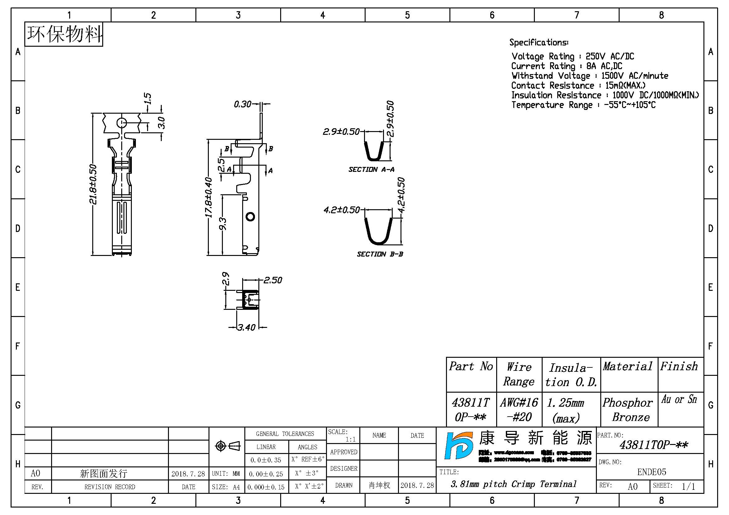 規格型號(hao):PH:3.81MM L:17.80MM AWG12#-20# 線(xian)端母端子