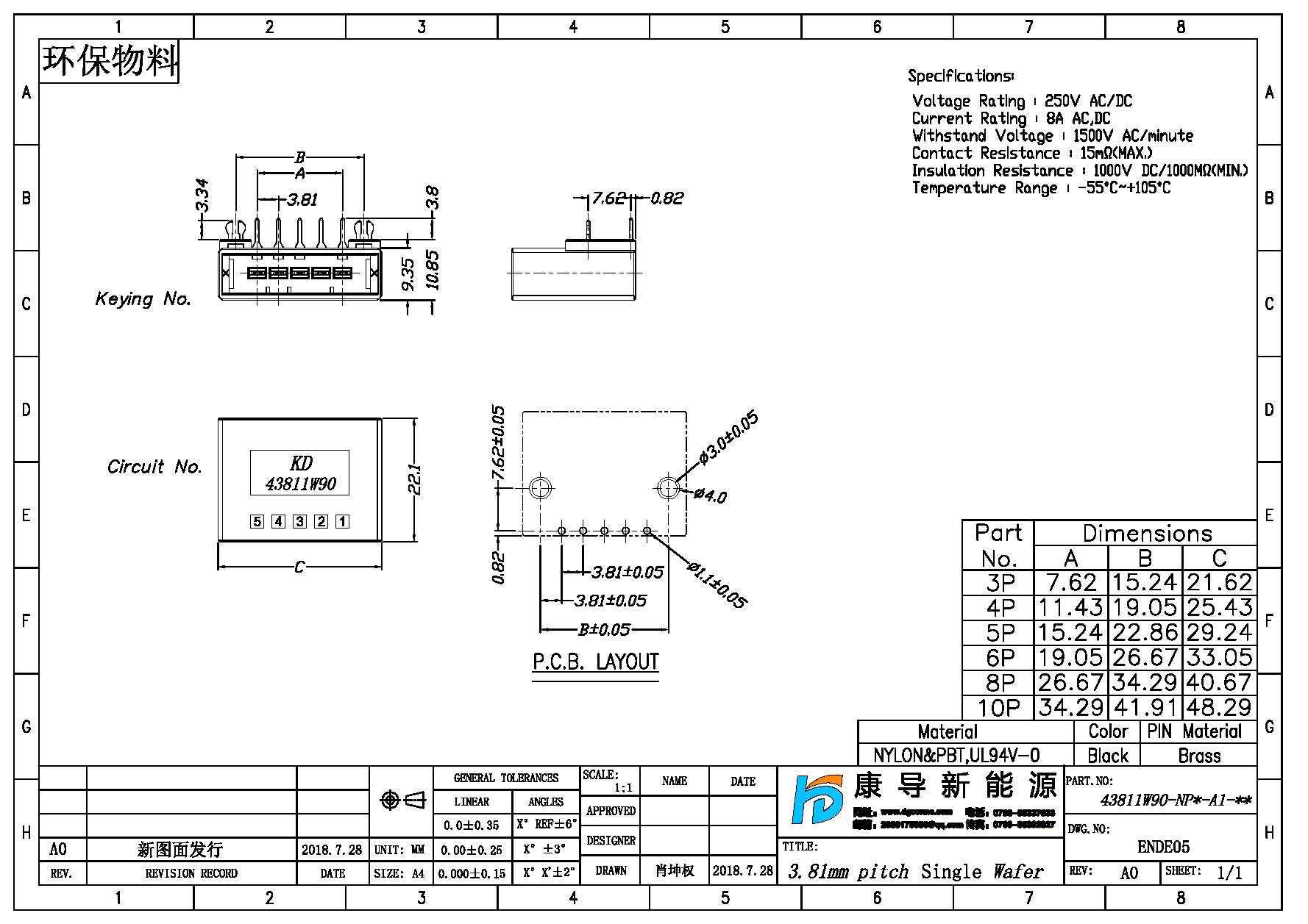 產品間距:3.81MM