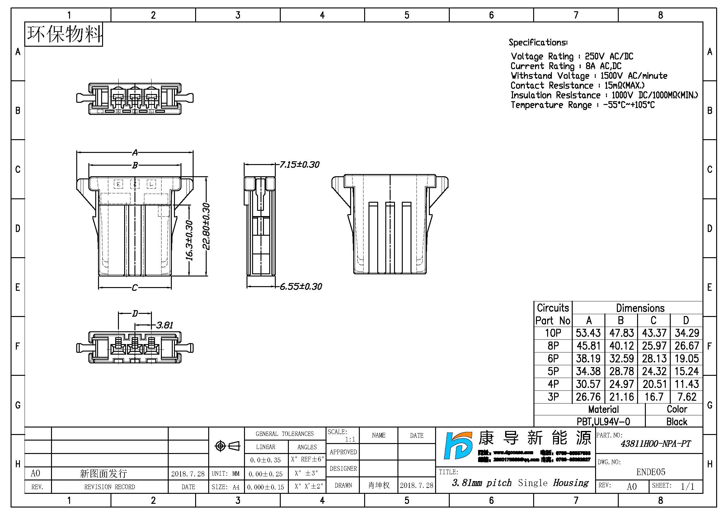 - 產品規格:3.81MM膠殼,單排線端公殼