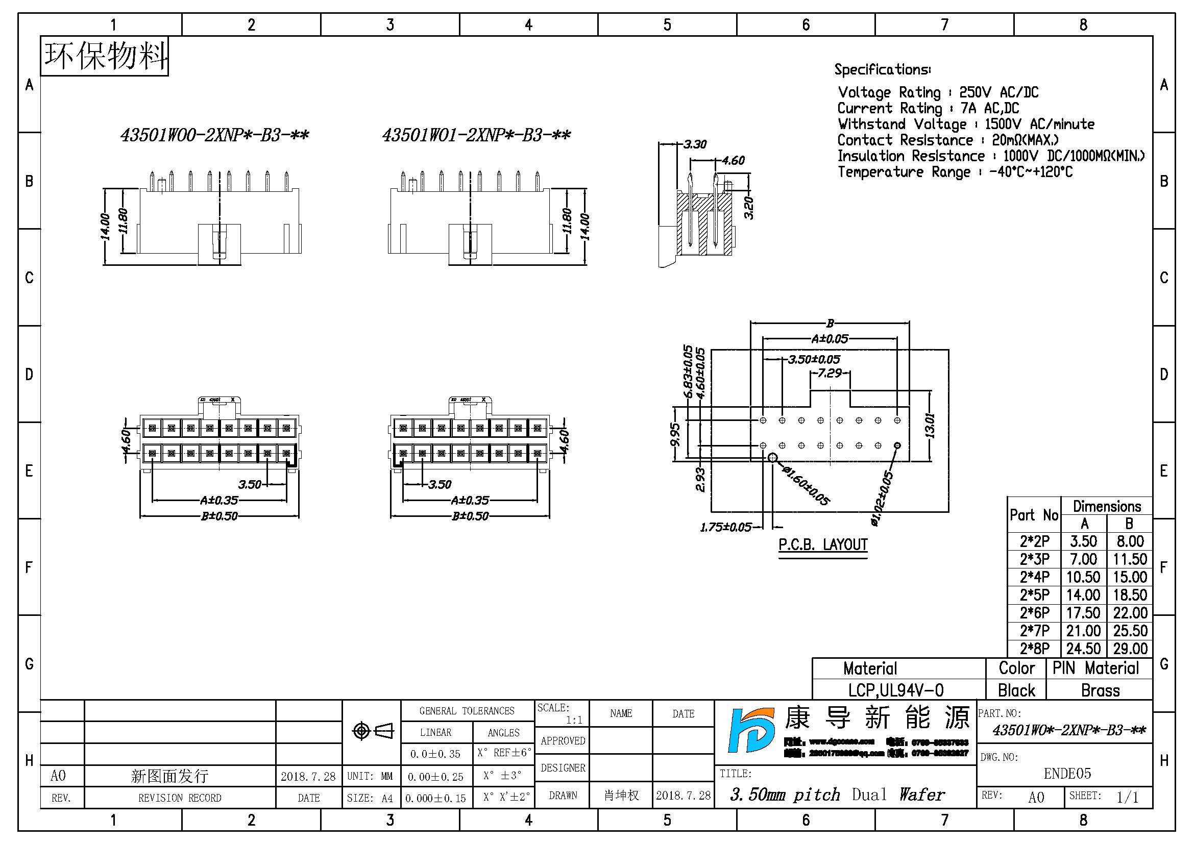 規格型號:PH:3.50MM H:14.0MM 2*NP 180度