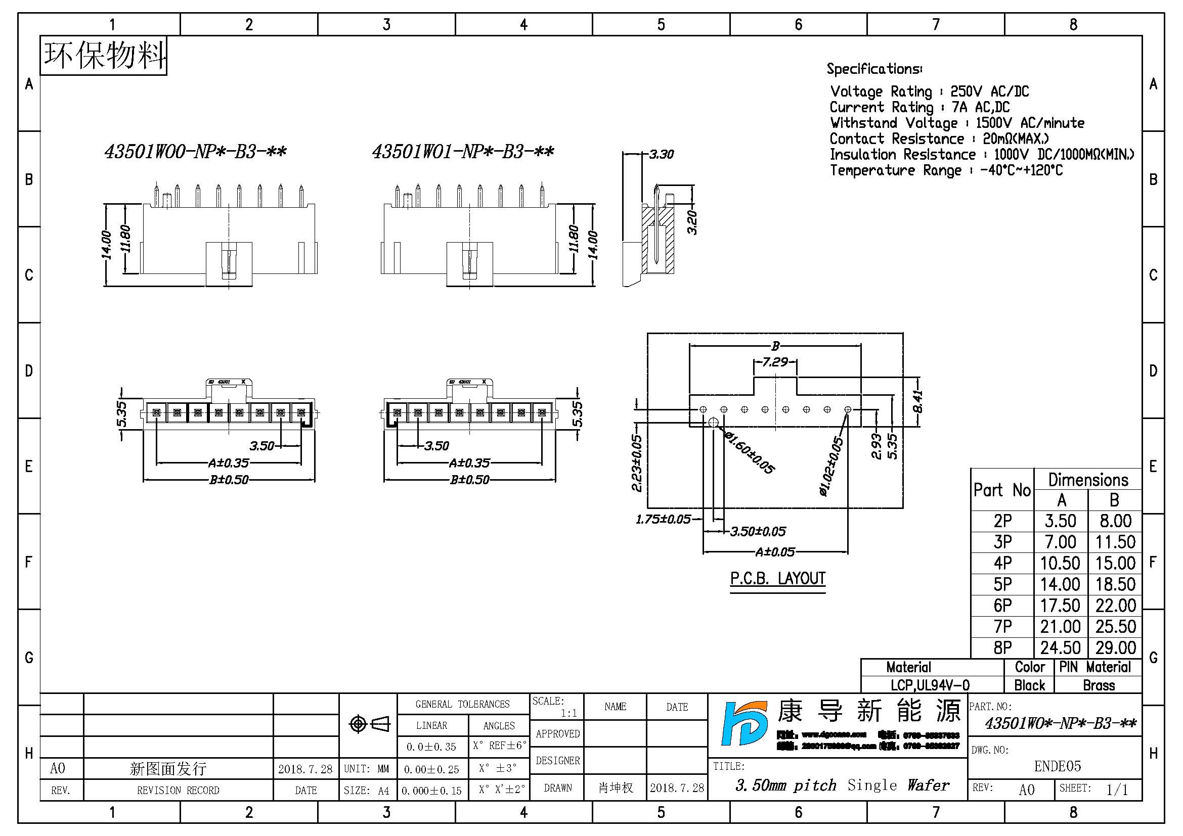 規格型號:PH:3.50MM H:14.0MM 1*NP 180度