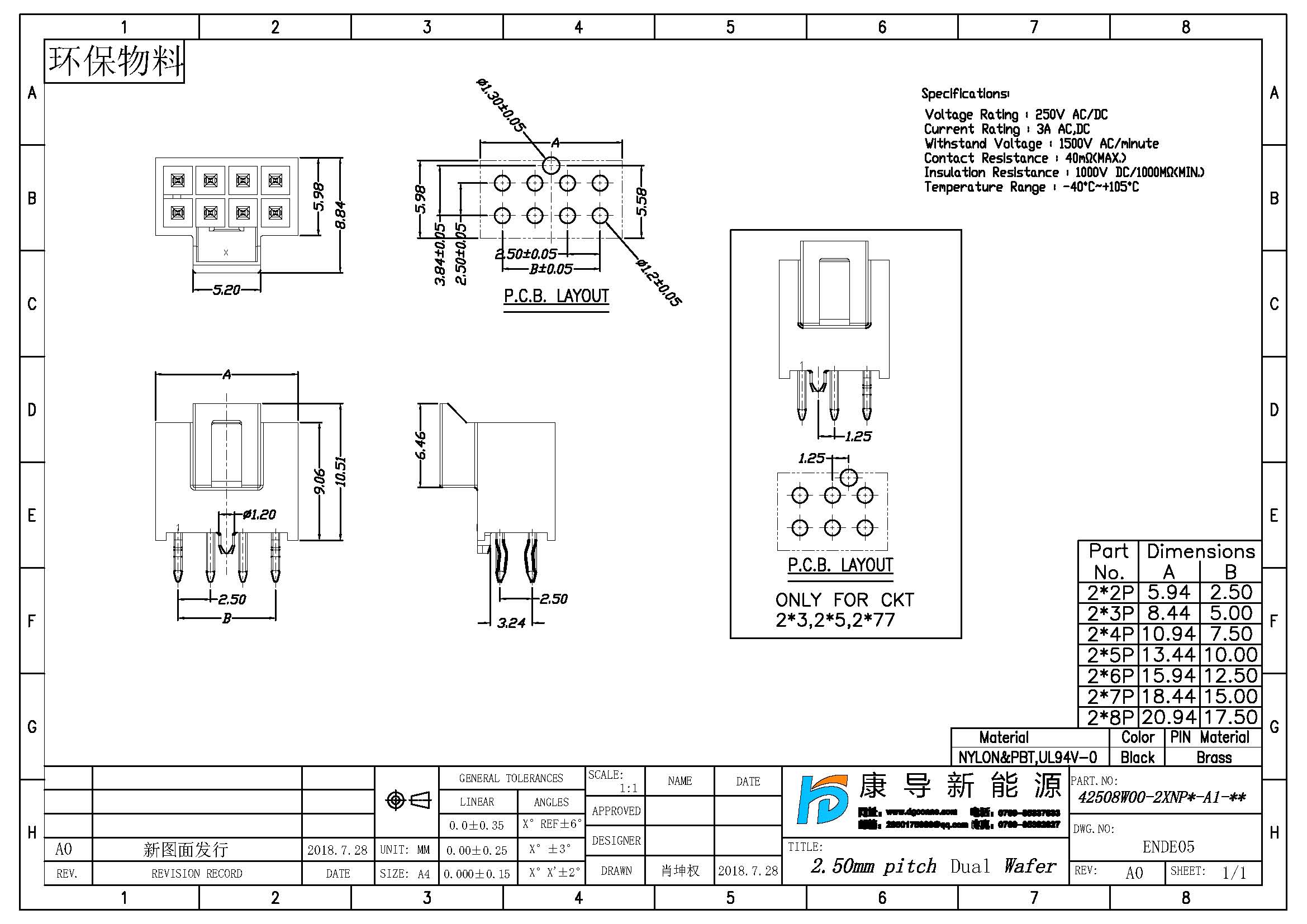 規格型號:PH:2.50MM H:10.51MM 2*NP 180度