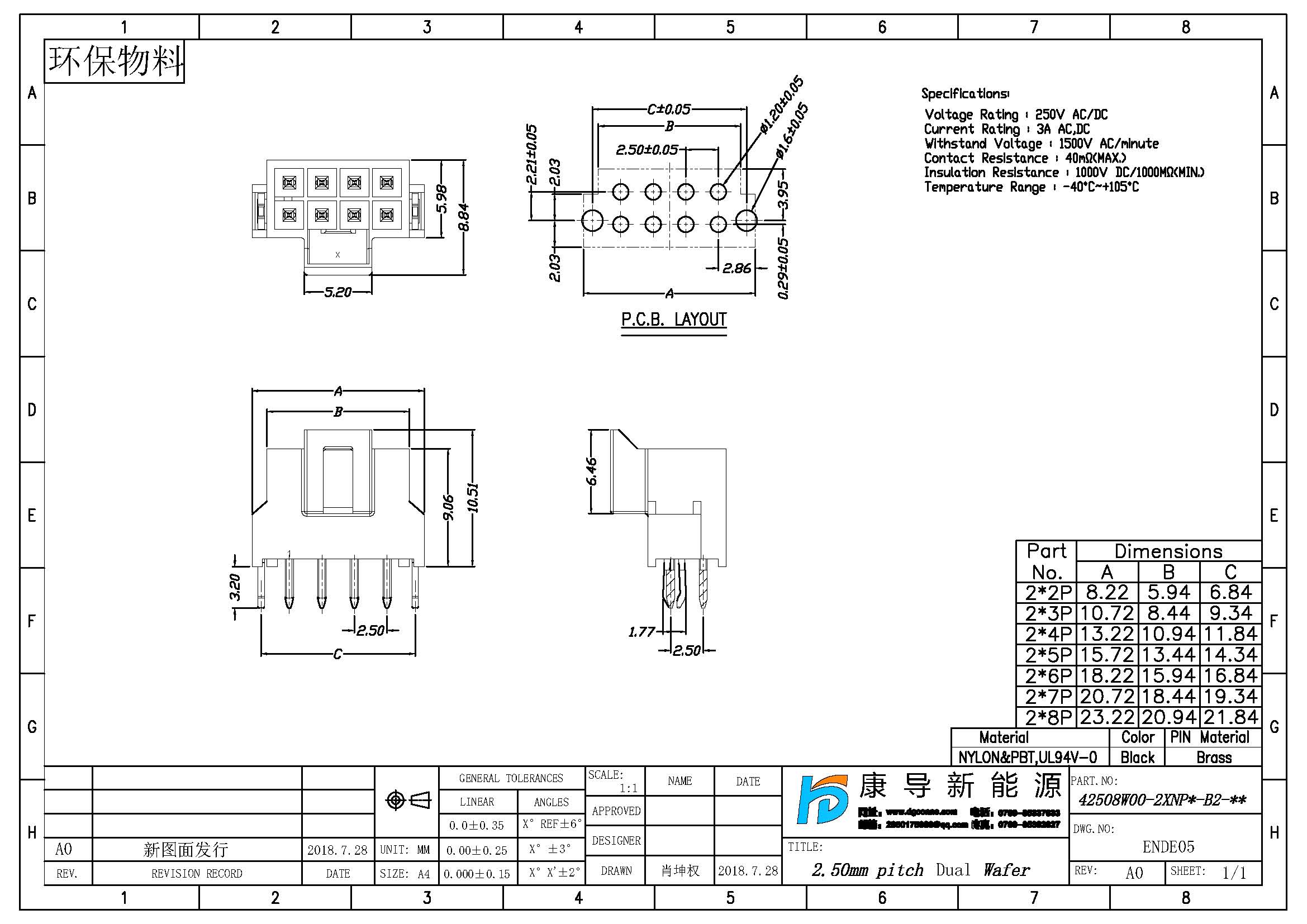 - 產品規格:2.50MM針座,雙排直針,帶焊扣