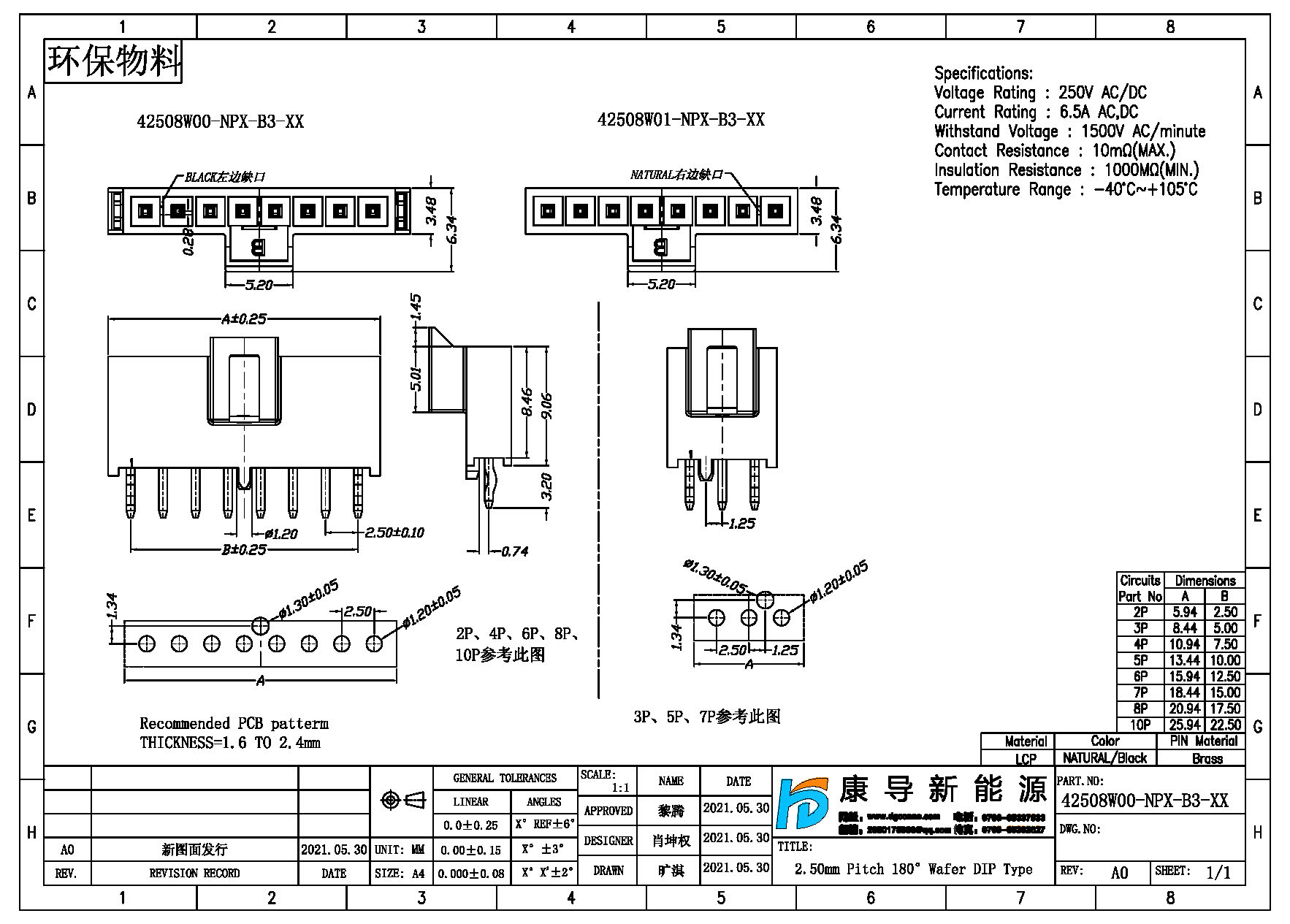 規(gui)格型號:PH:2.50MM H:10.51MM 1*NP 180度