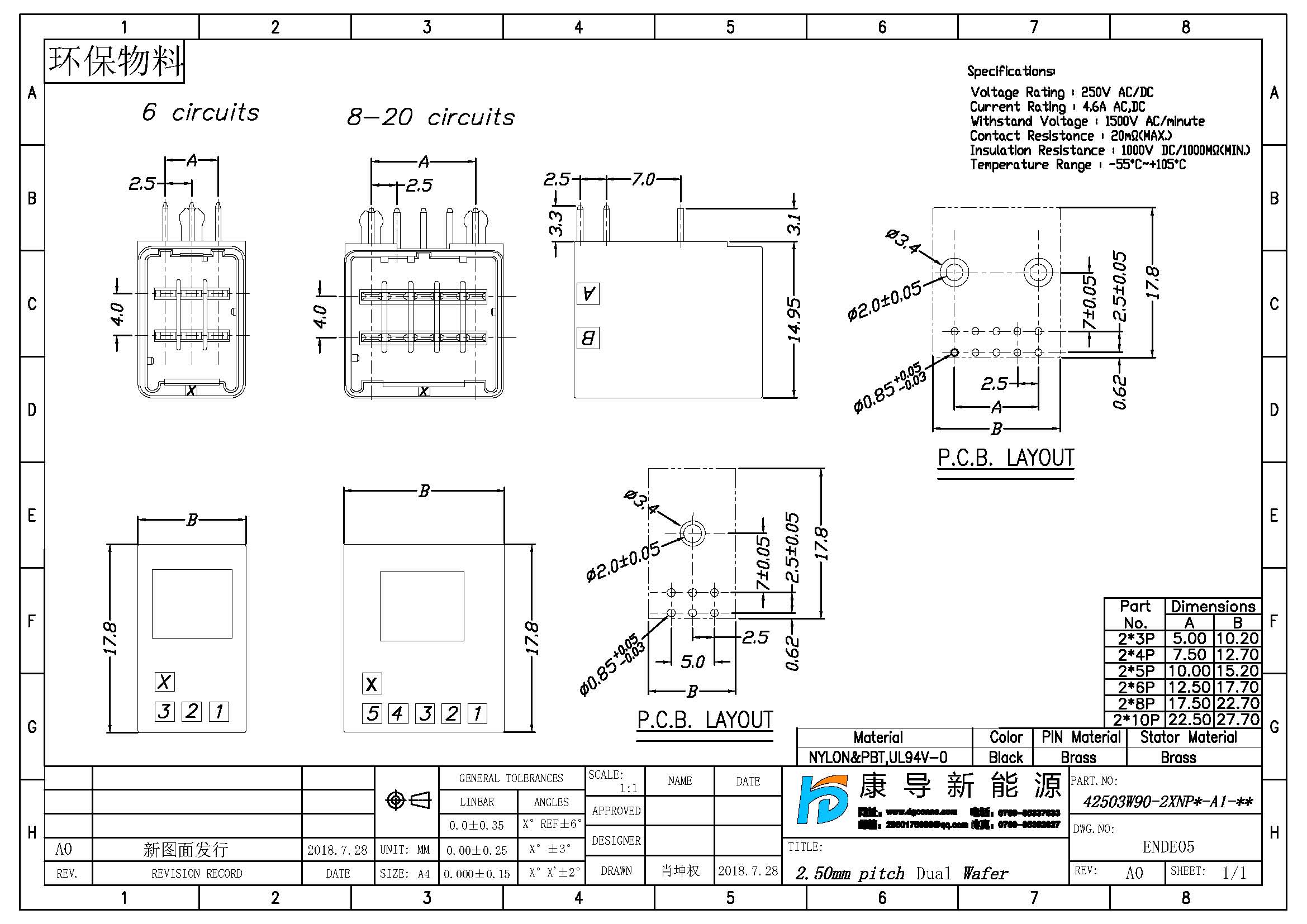 規格型號:PH:2.50MM H:15.50MM 2*NP 90度