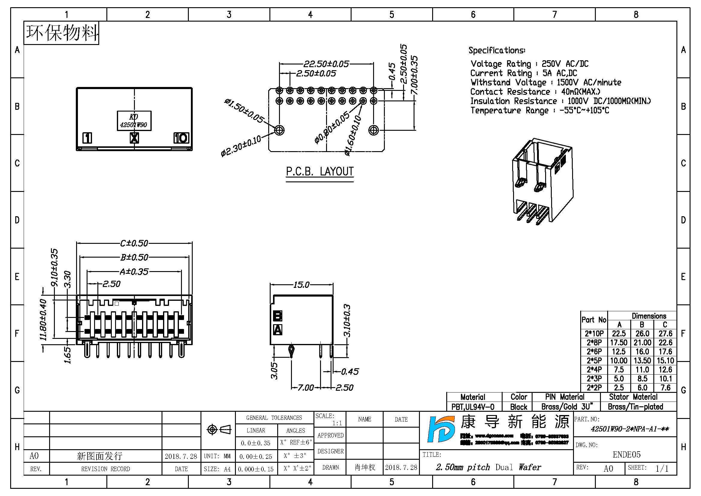 規格型(xing)號:PH:2.50MM H:11.80MM 2*NP 180度