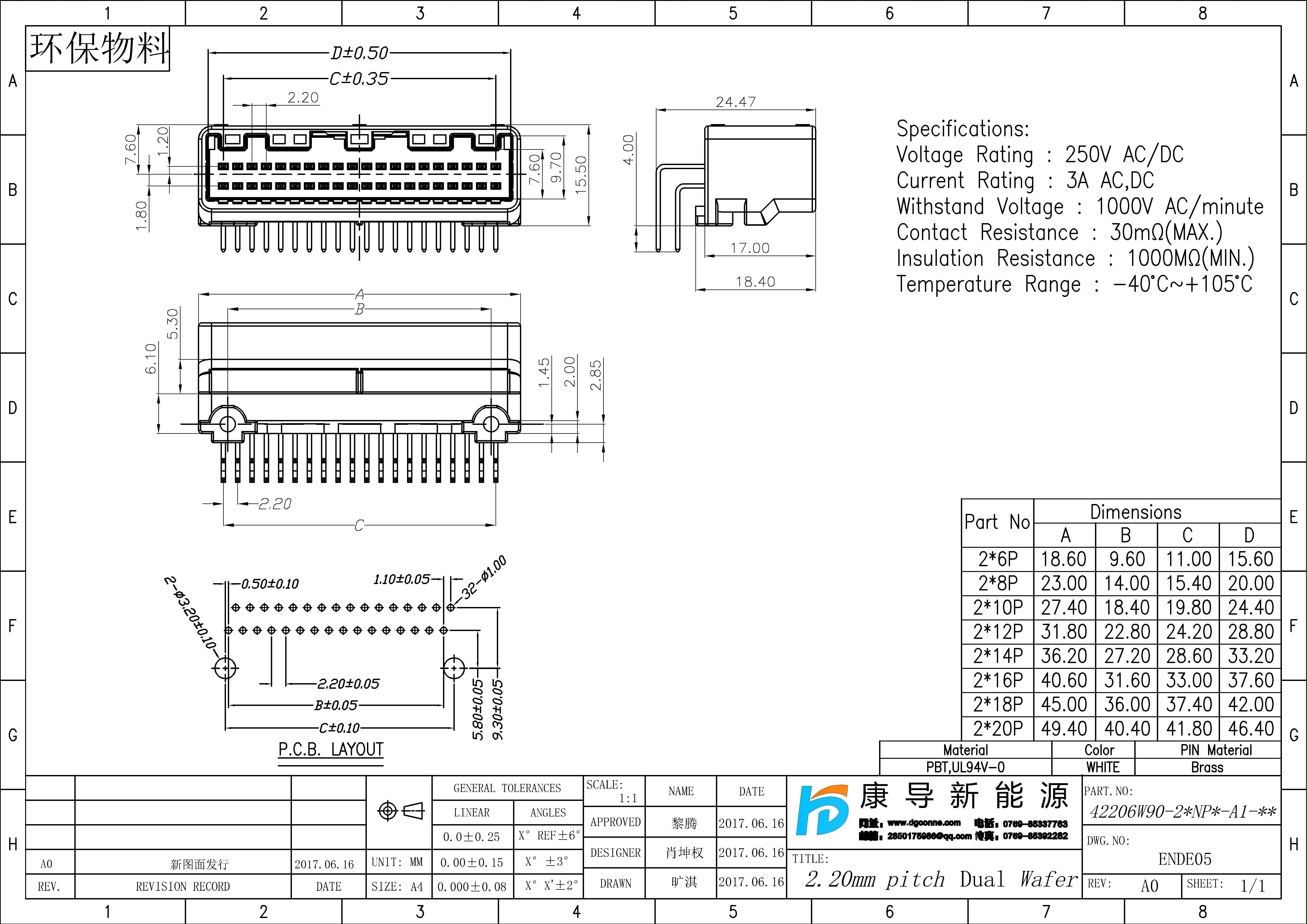 產品行距:2.20MM