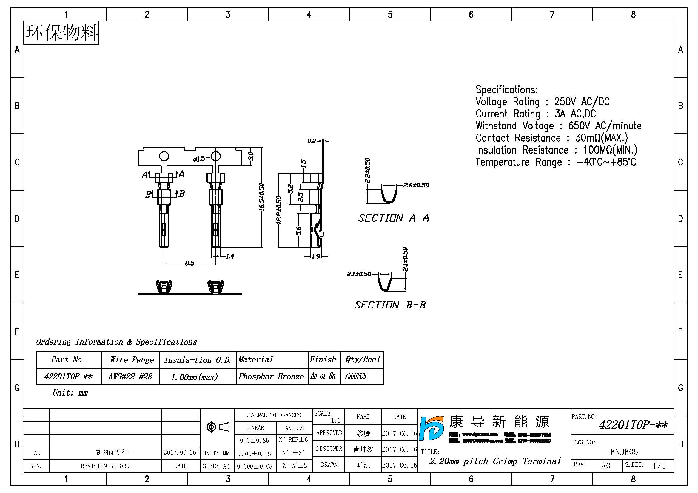 規格型(xing)號:PH:2.20MM L:12.20MM AWG22#-AWG28# 線端母(mu)端子