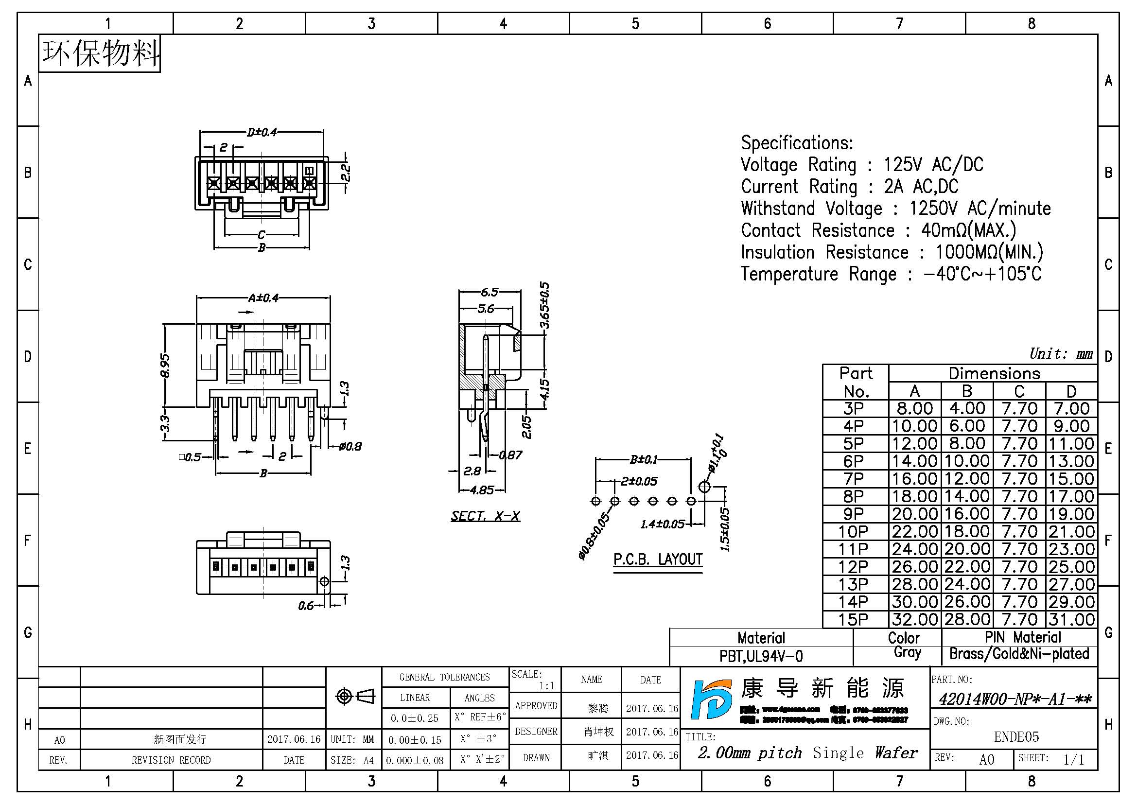 規格型號:PH:2.00MM H:8.95MM 1*NP 180度