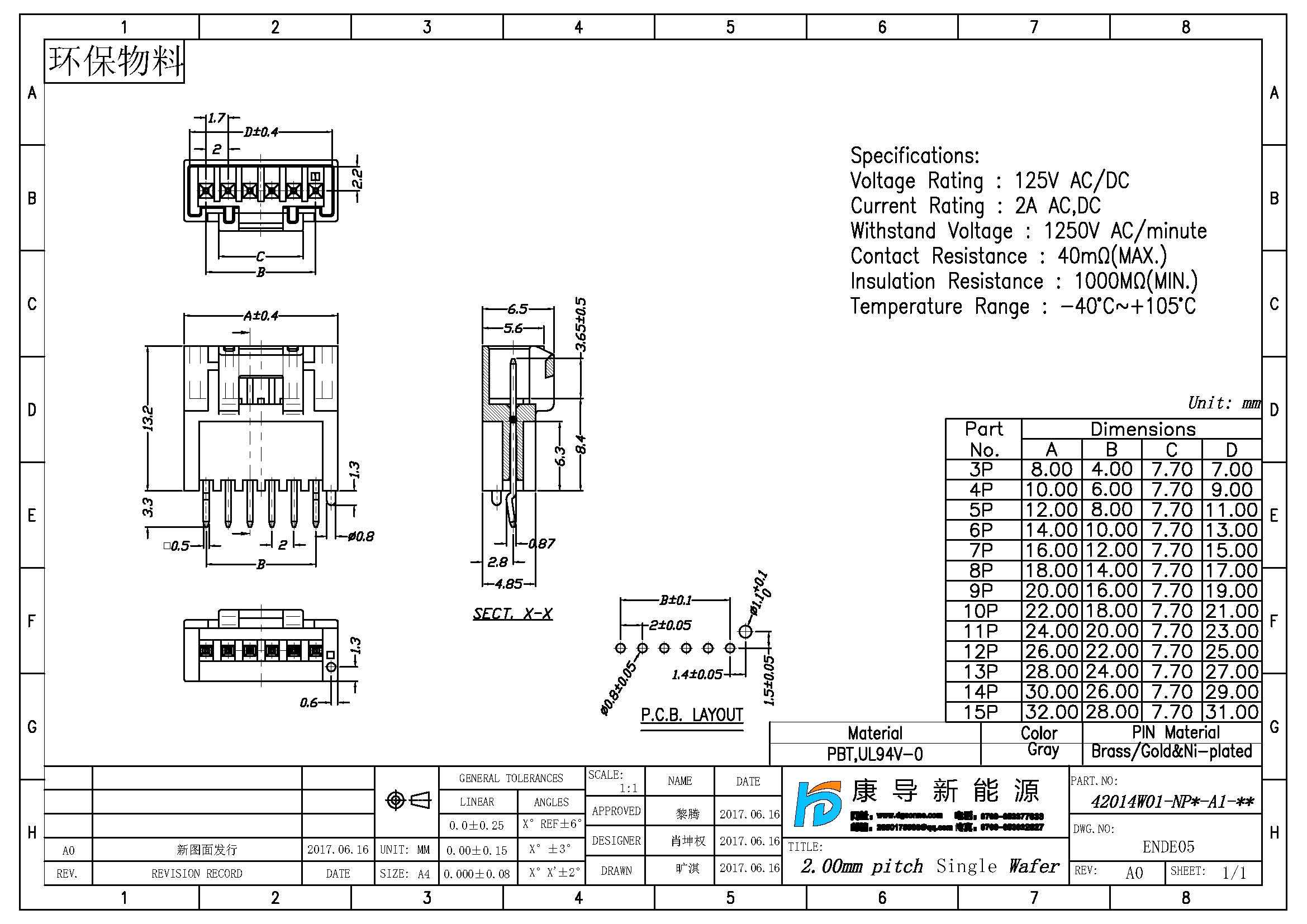 規格型號:PH:2.00MM H:13.20MM 1*NP 180度