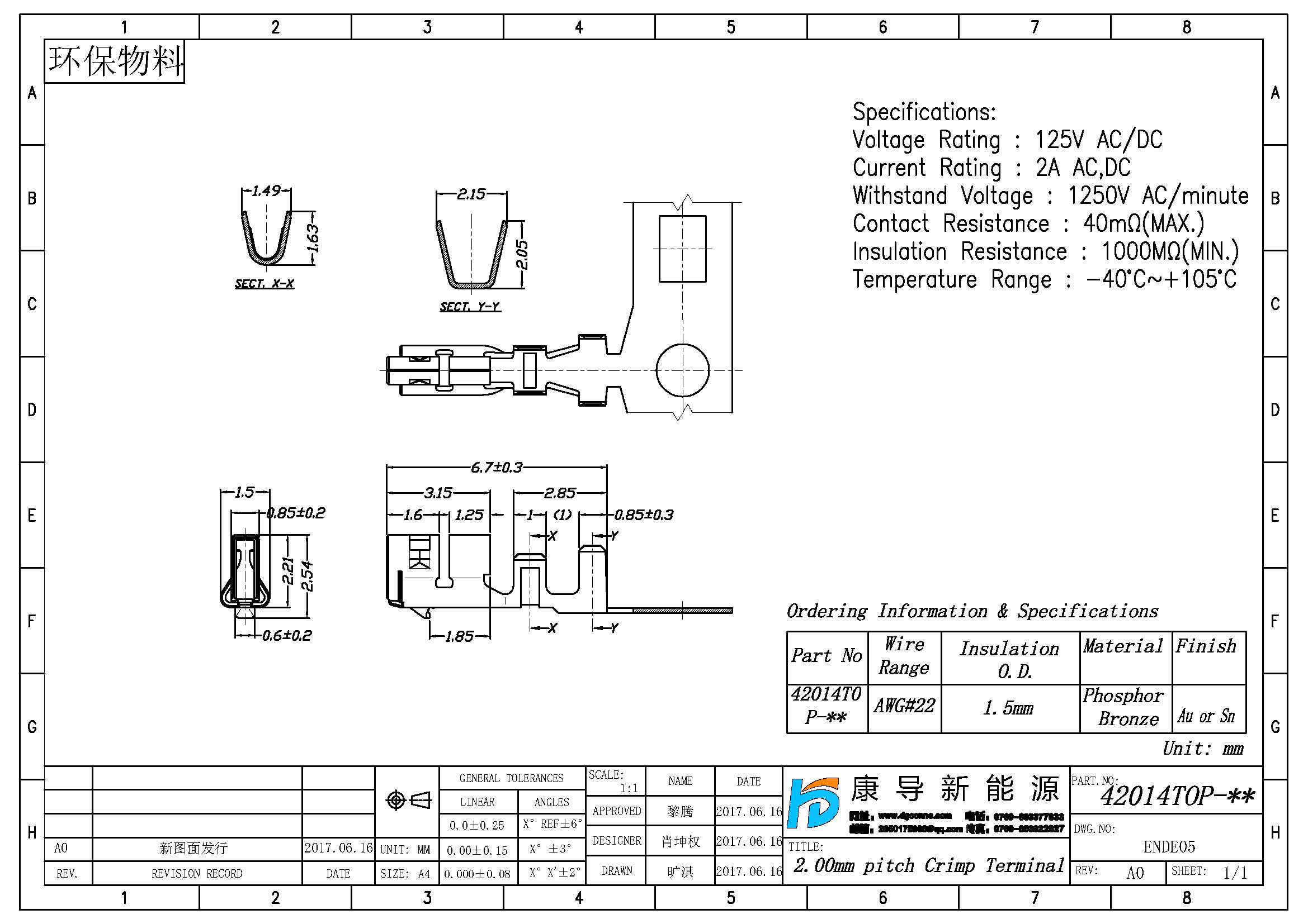 規格型號:PH:2.0MM L:6.70MM AWG22#-AWG28# 線端(duan)母端(duan)子(zi)