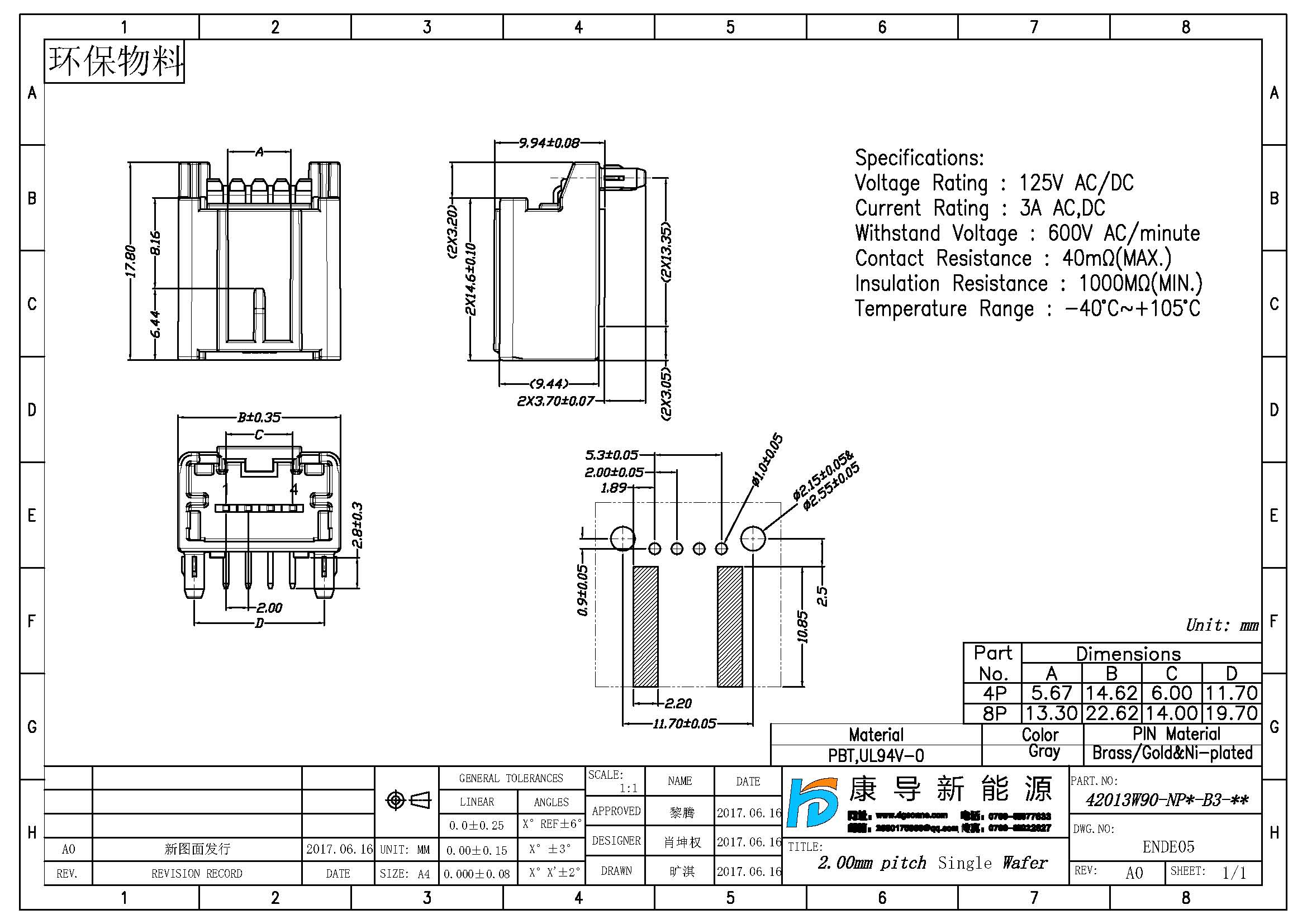 規格型號:PH:2.00MM H:9.94MM 1*NP 90度