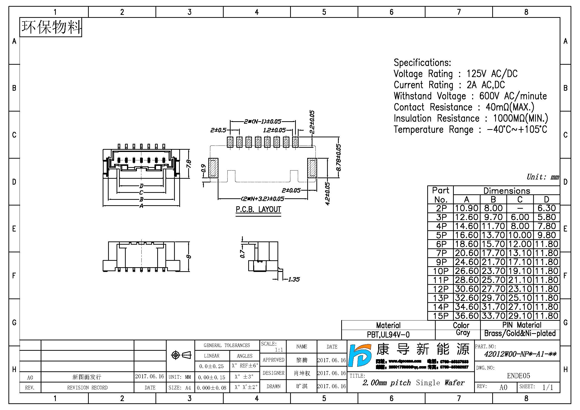 規格型號:PH:2.00MM H:8.00MM 1*NP 立式貼片