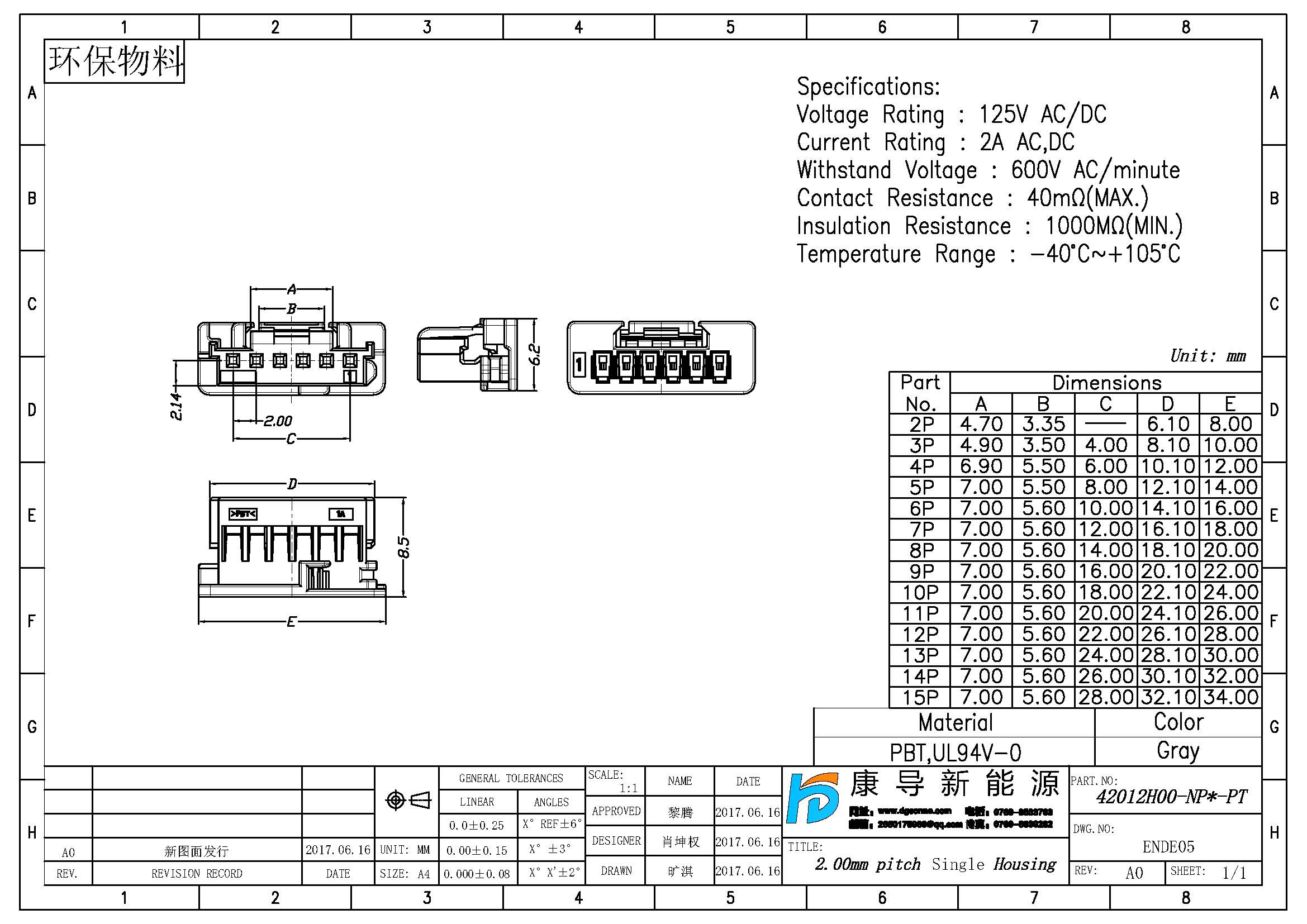 規(gui)格型號:PH:2.00MM H:8.50MM 1*NP 線(xian)端公(gong)殼