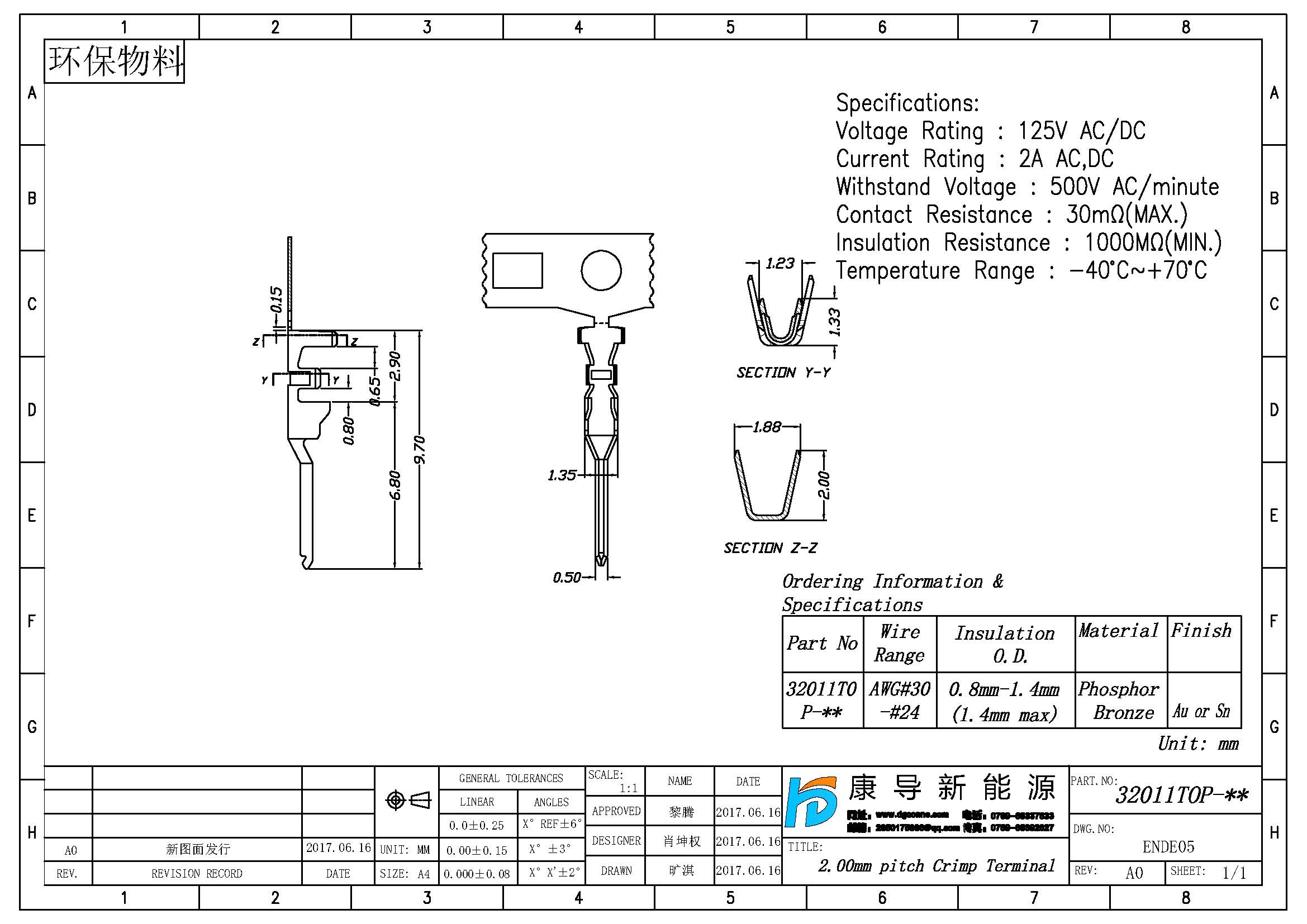 規格型號(hao):PH:2.0MM L:9.70MM AWG24#-AWG30# 線端公(gong)端子