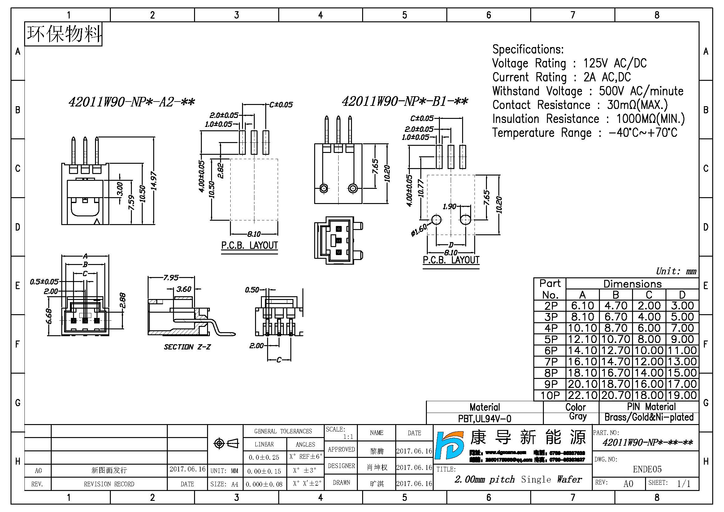 產品間距:2.00MM