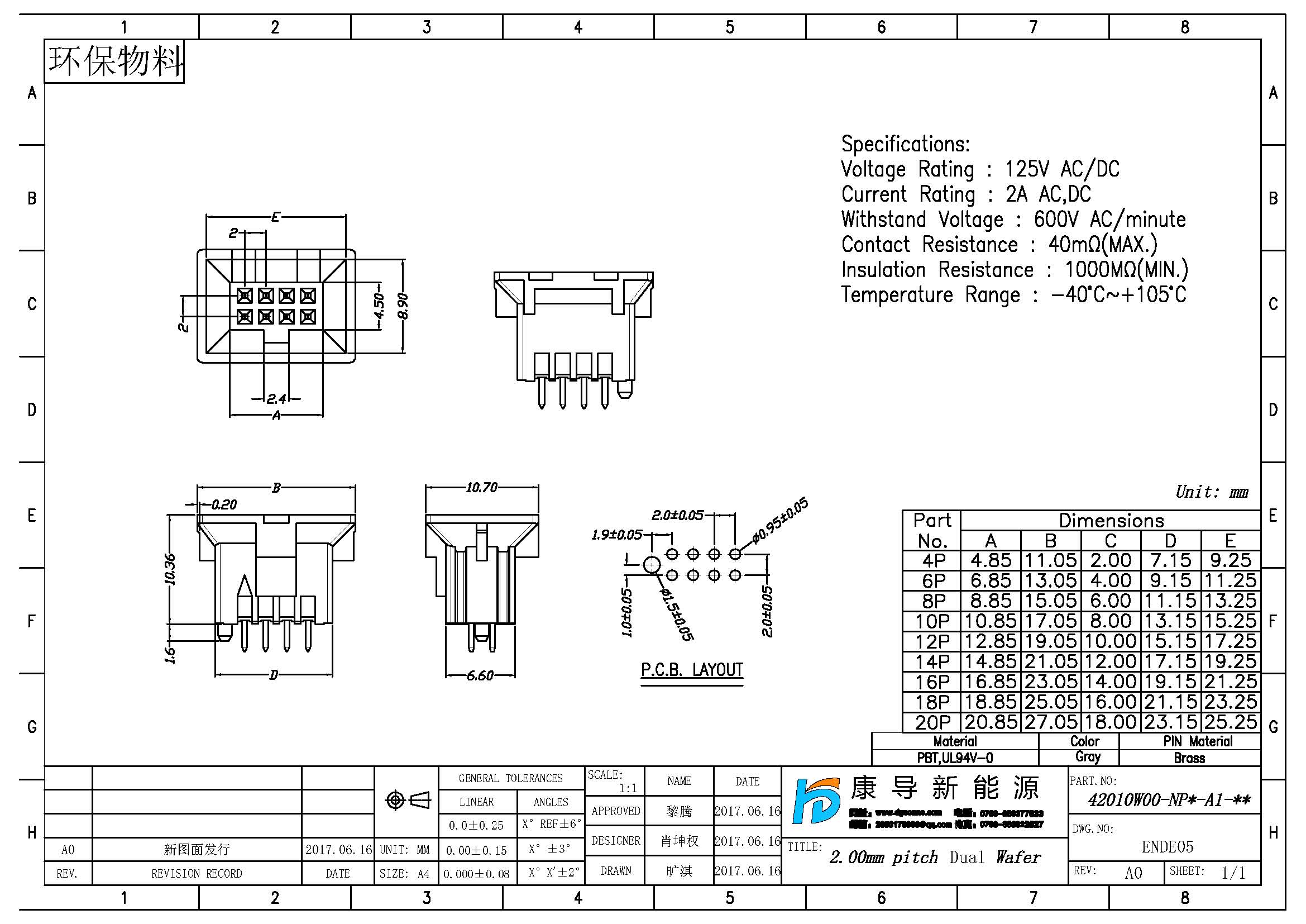 規格型(xing)號:PH:2.00MM H:10.36MM 2*NP 180度(du)