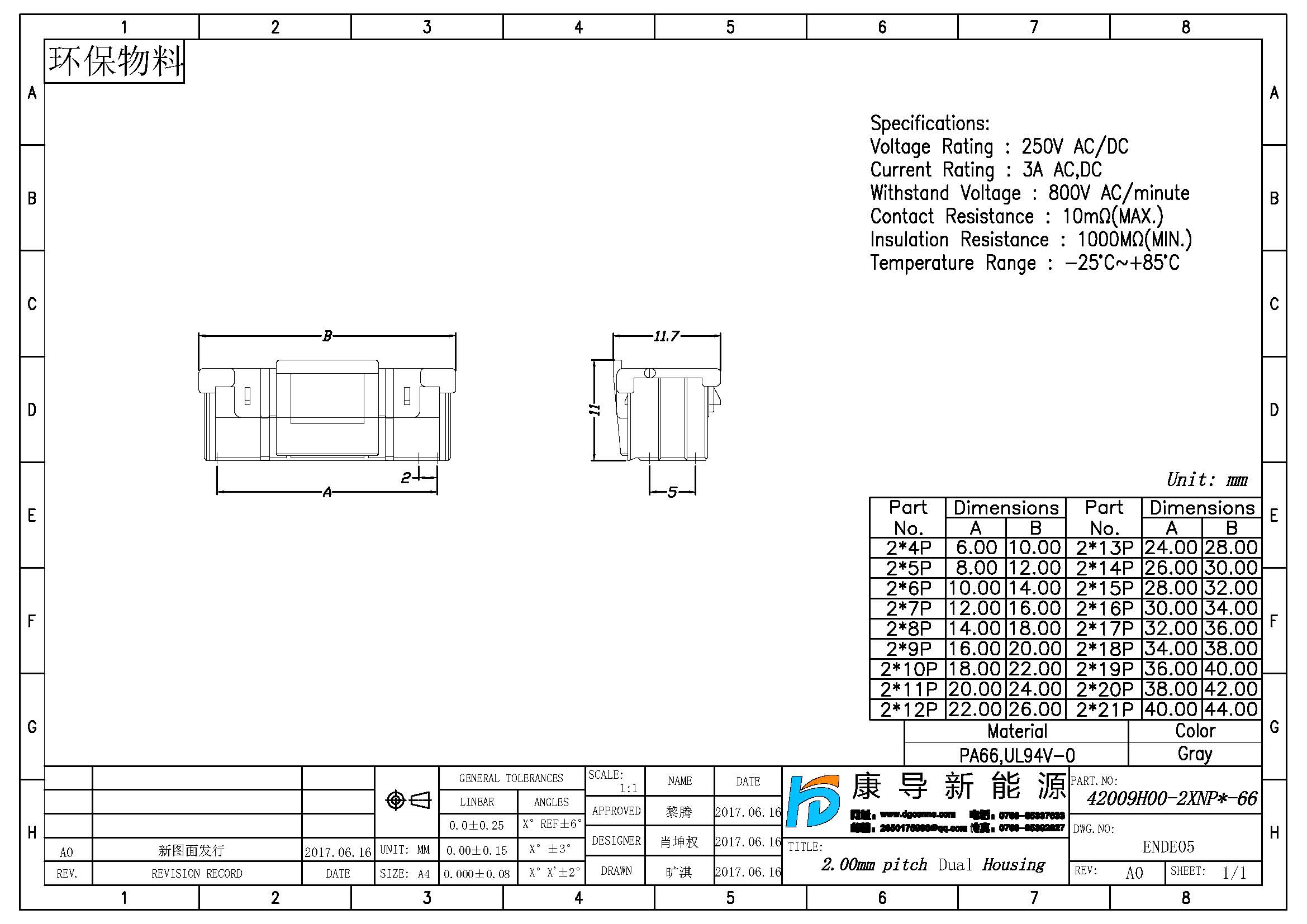規格型號(hao):PH:2.00MM H:11.00MM 2*NP 線端公殼