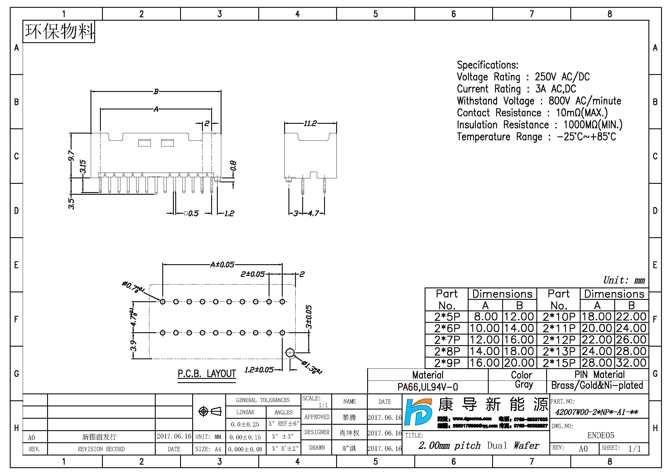 規格型(xing)號(hao):PH:2.00MM H:9.70MM 2*NP 180度