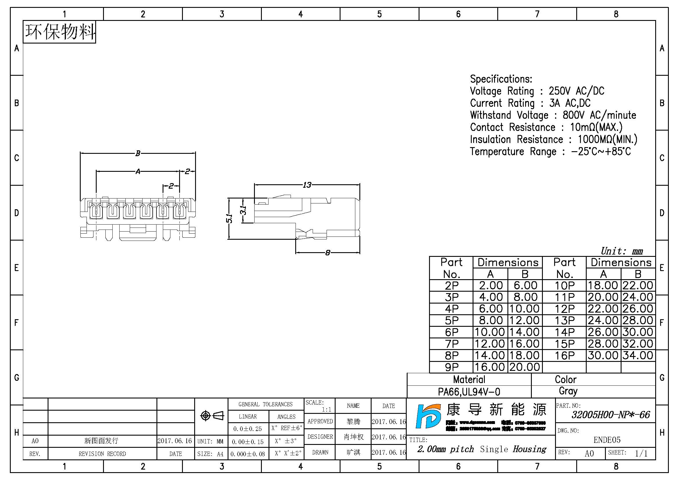 規格型號:PH:2.00MM H:13.00MM 1*NP 線端(duan)母殼(ke)
