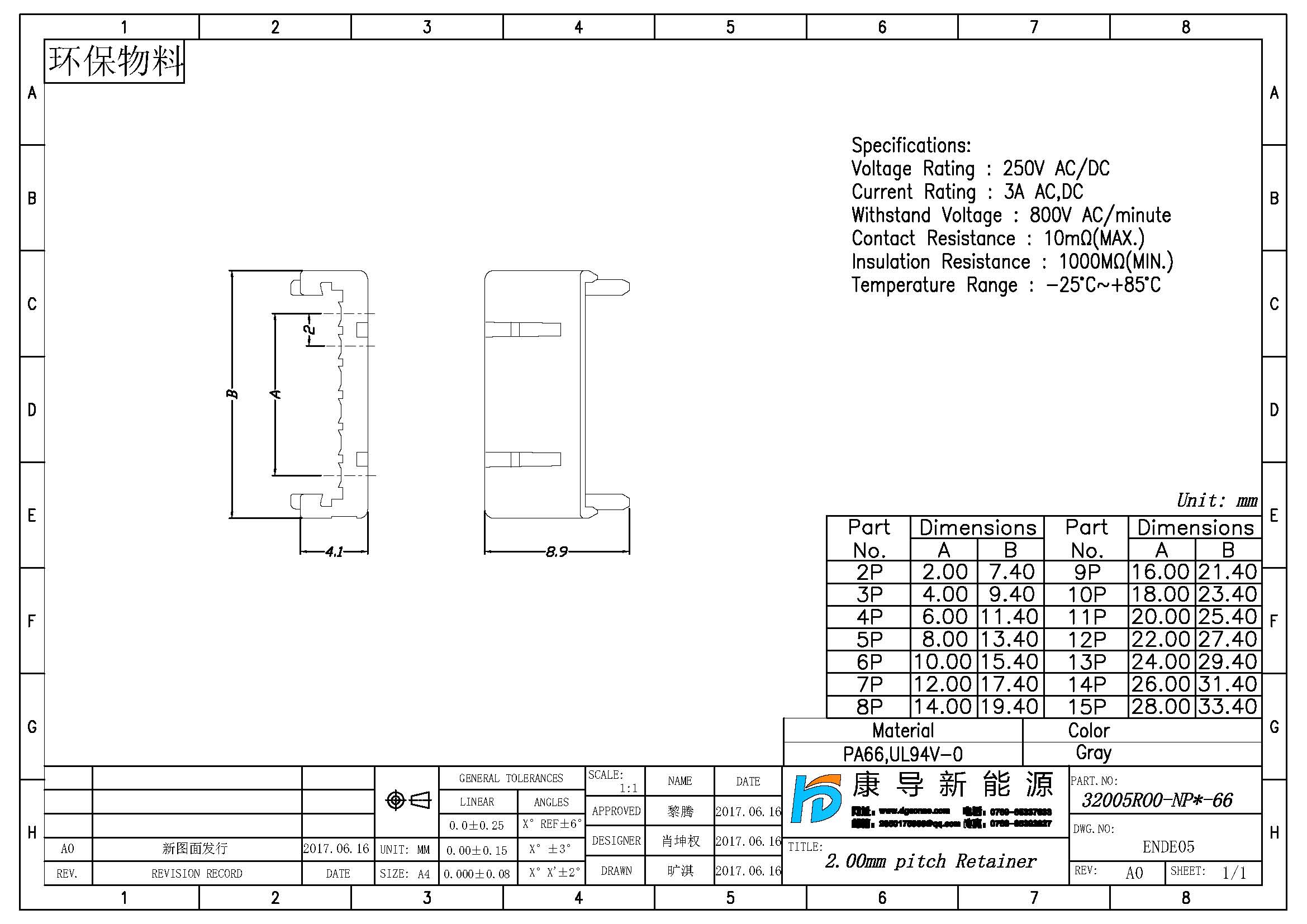 規(gui)格型(xing)號:PH:2.00MM H:8.90MM 1*NP 定位塞(sai)