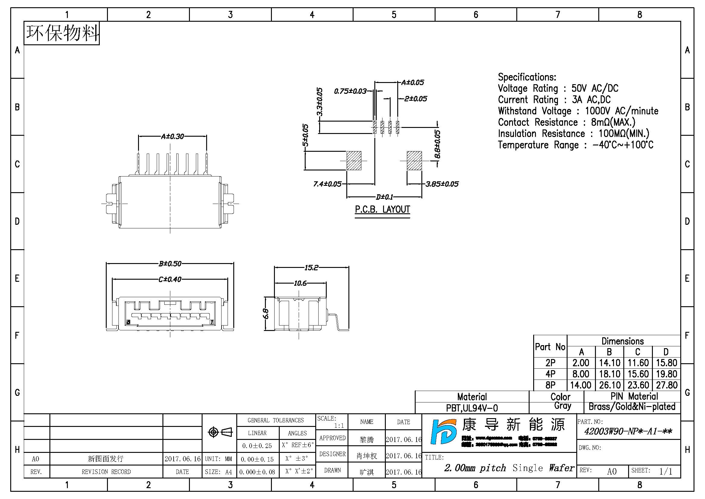 規格型號:PH:2.00MM H:6.80MM 1*NP 臥(wo)貼(tie)