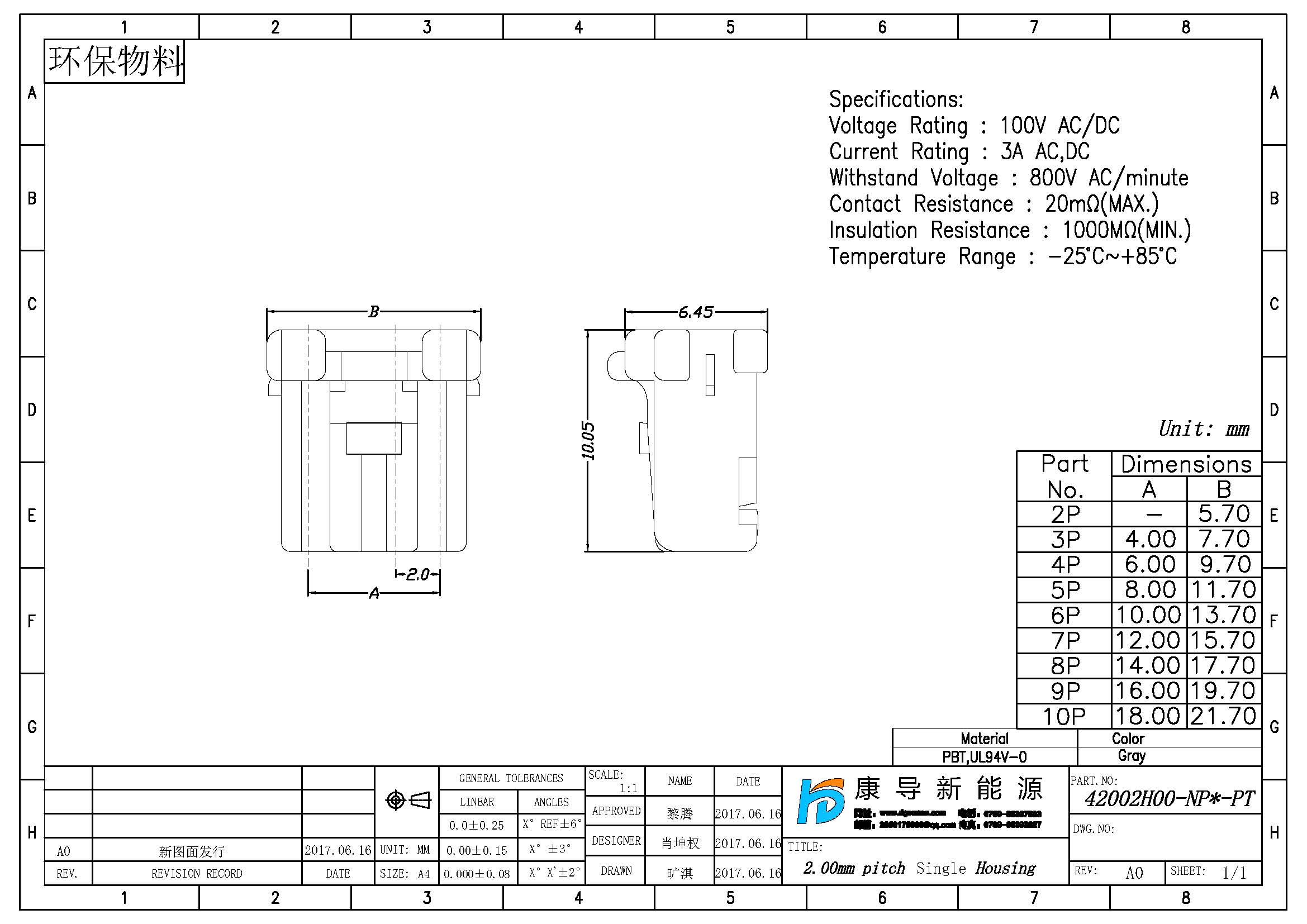 產品間距(ju):2.00MM