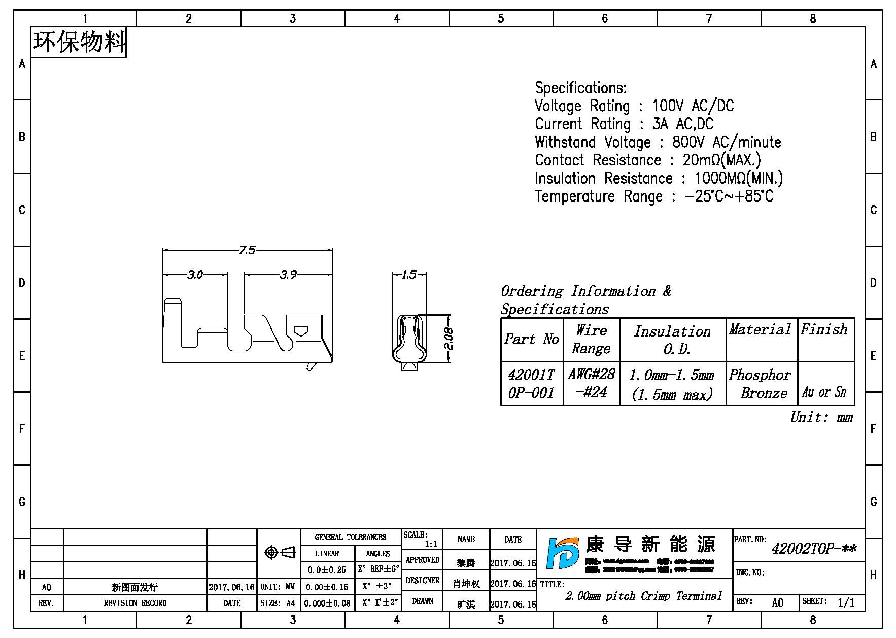 規格(ge)型號:PH:2.00MM L:7.50MM AWG24#-AWG28# 線(xian)端母端子