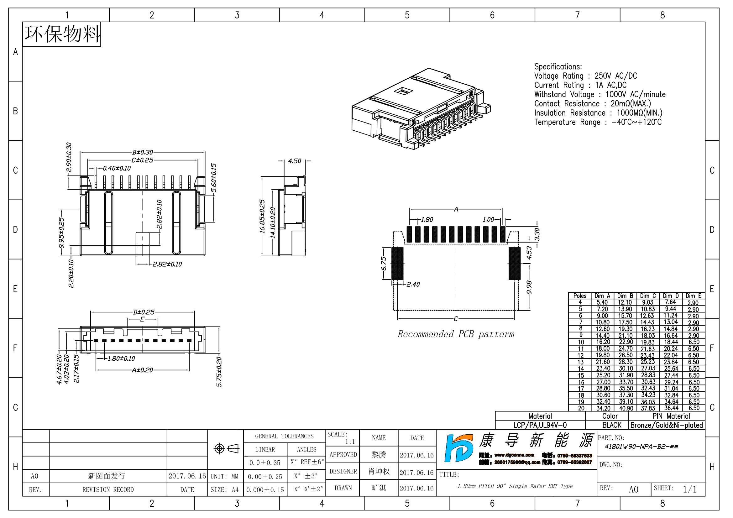 - 產品規格:1.80MM針座,單排貼片,臥式貼扣