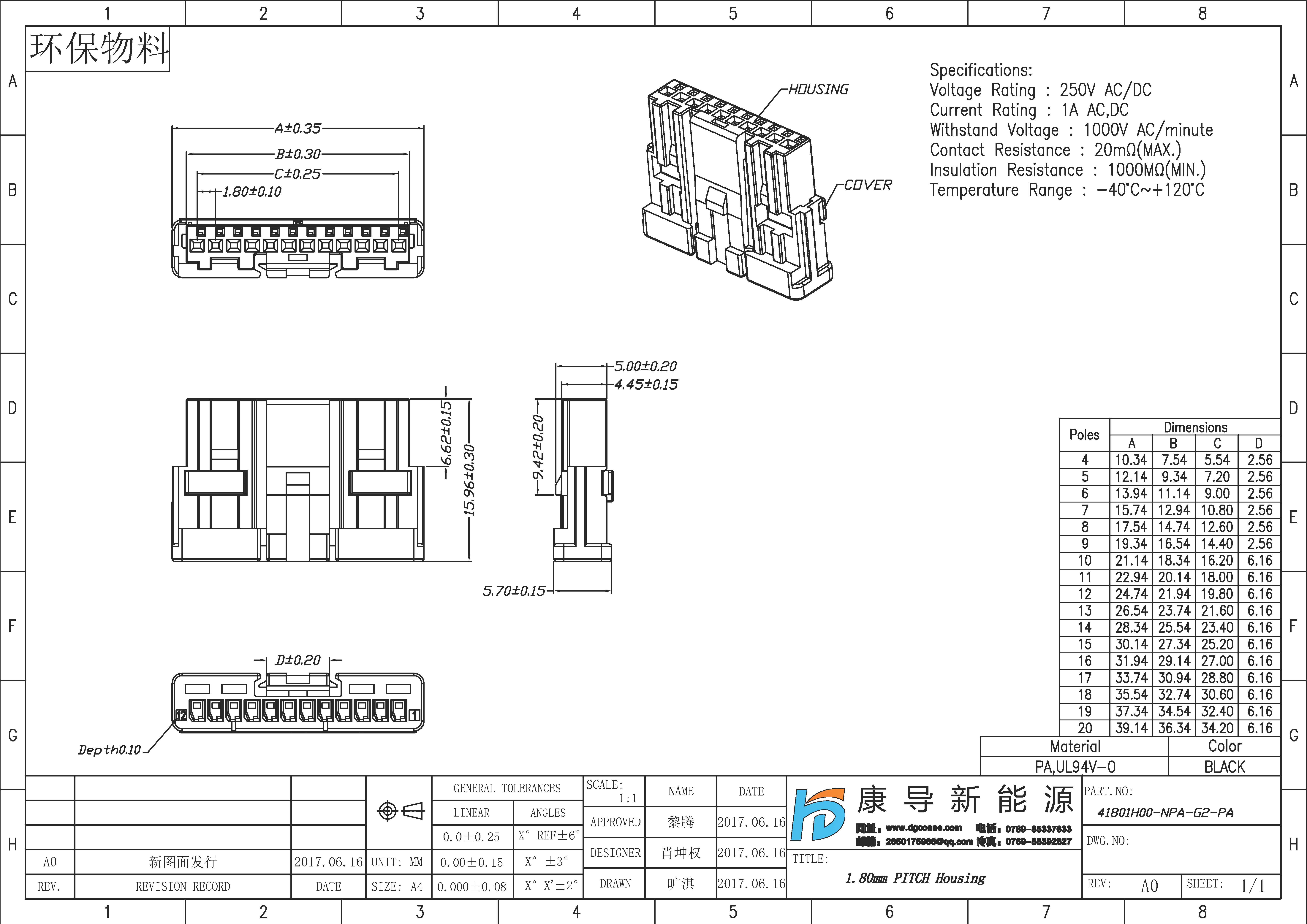 規(gui)格(ge)型號:PH:1.80MM H:15.96MM 1*NP 線端公殼