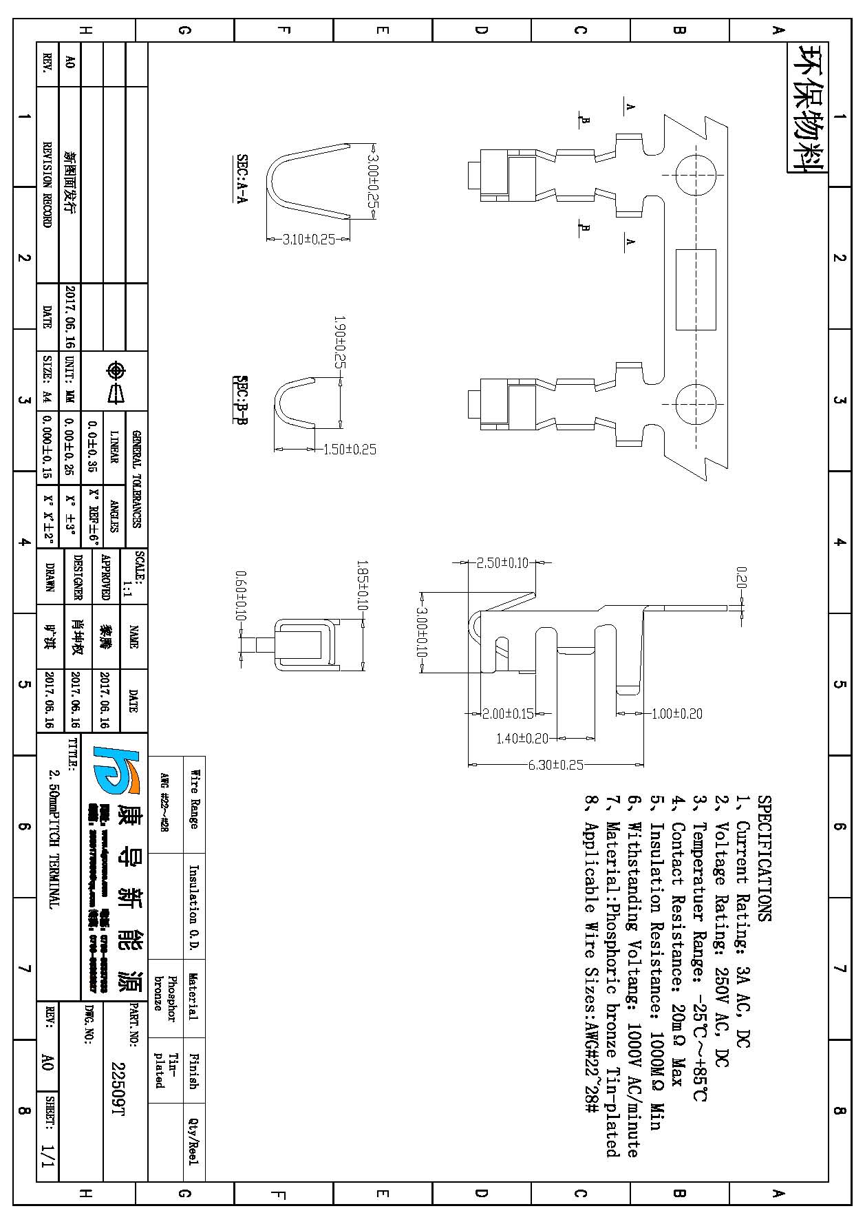 Spec:2.50mm PITCH TERMINAL