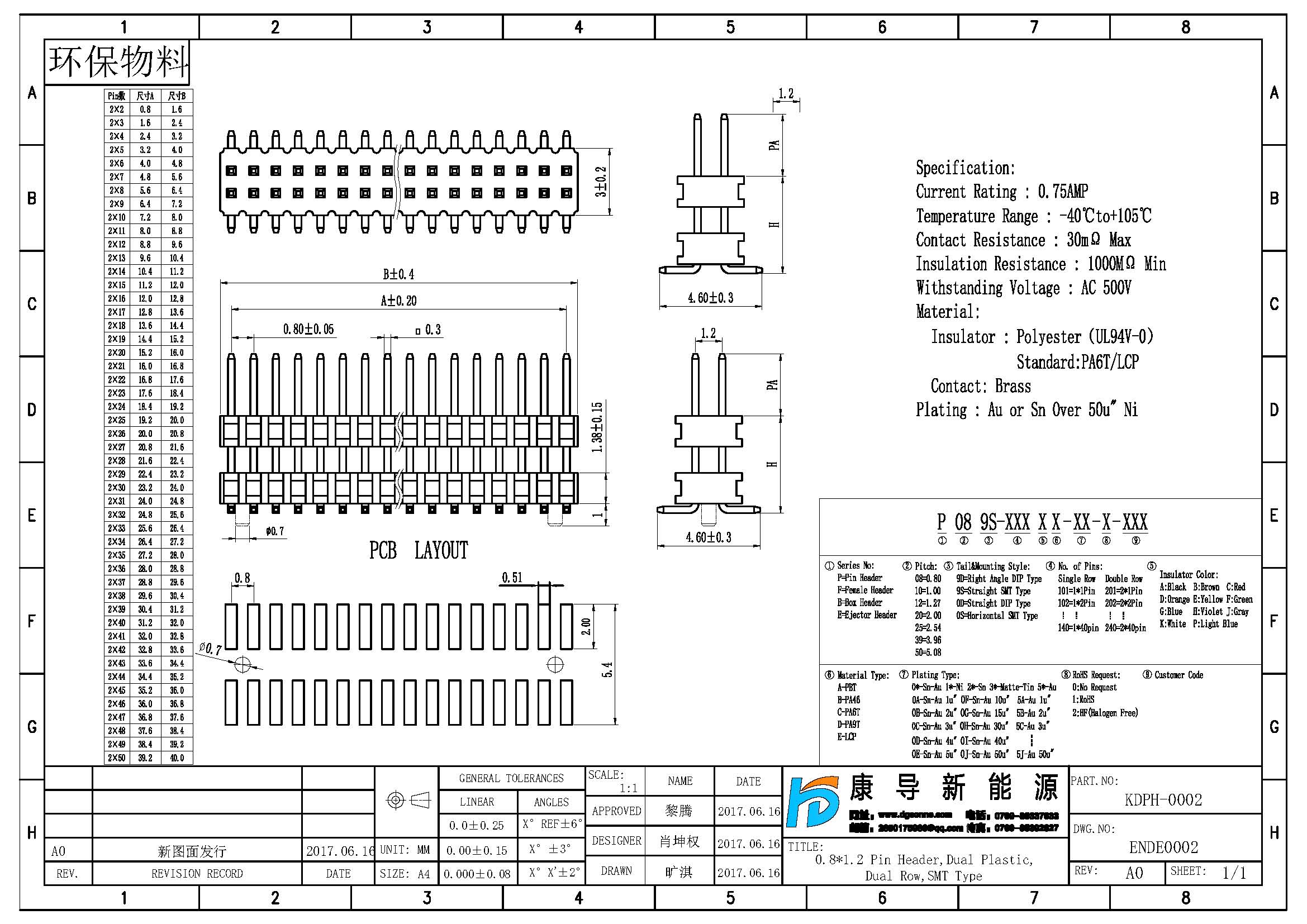 - 產品規格:0.8*1.2MM雙排針,多塑立貼