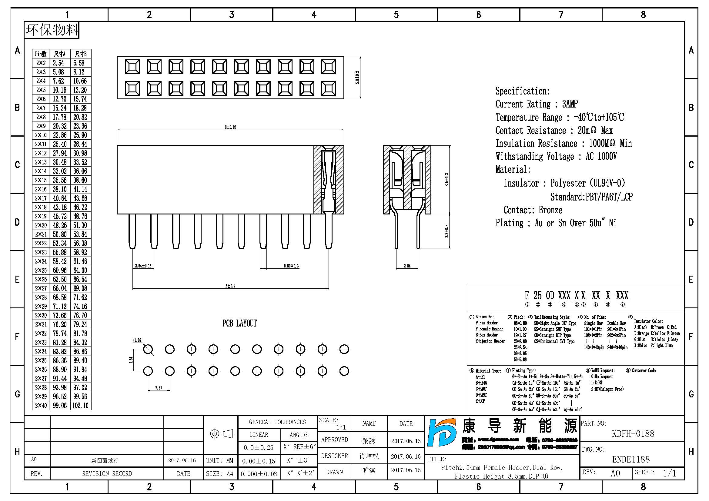 規格型號:FH:2.54MM H:8.5MM 2*NP 180度 O端