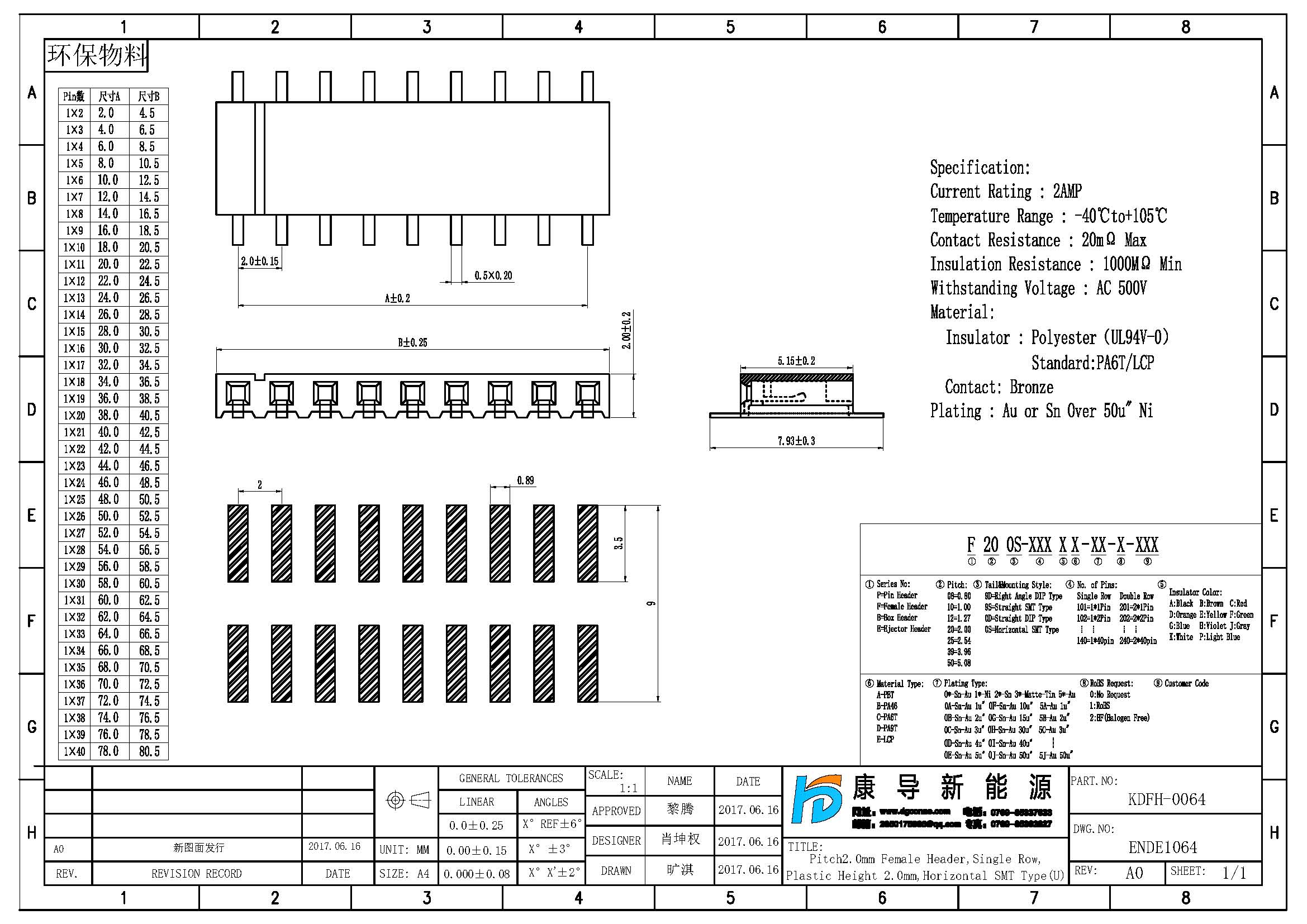 規格型號:FH:2.0MM H:2.00MM 1*NP SMT U端側插