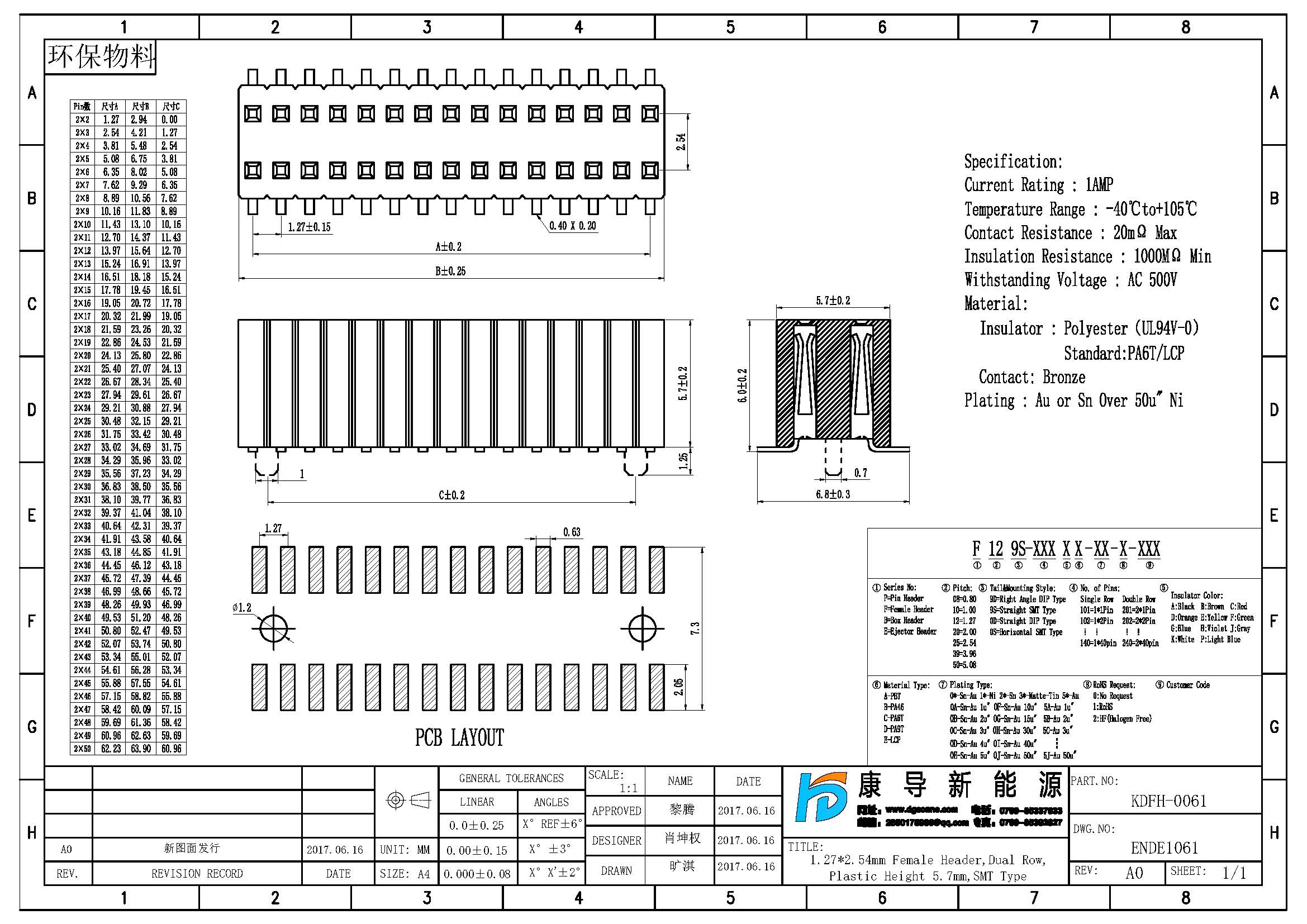 - 產品規格:1.27*2.54MM雙排母,貼片,U端
