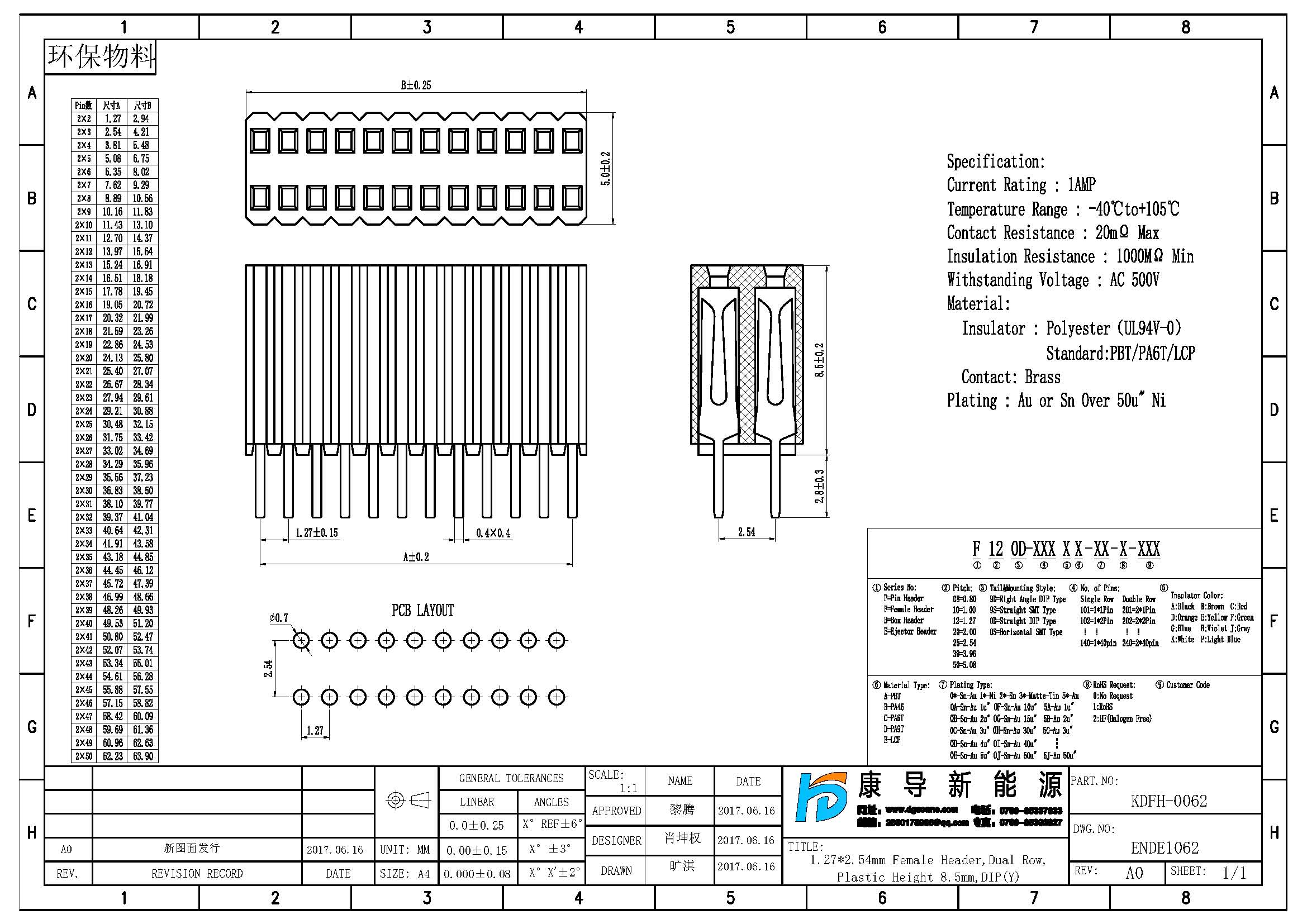 產品名稱:1.27*2.54MM排母