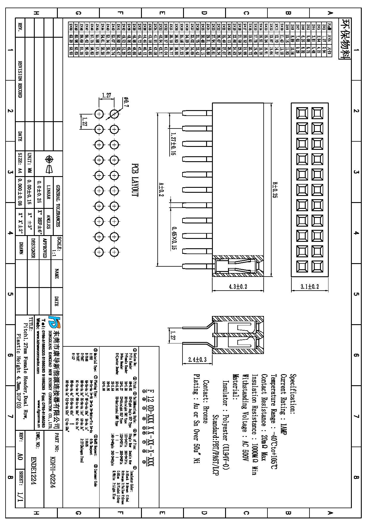規格型號:FH:1.27MM H:4.3MM 2*NP 180度 O端防漏錫