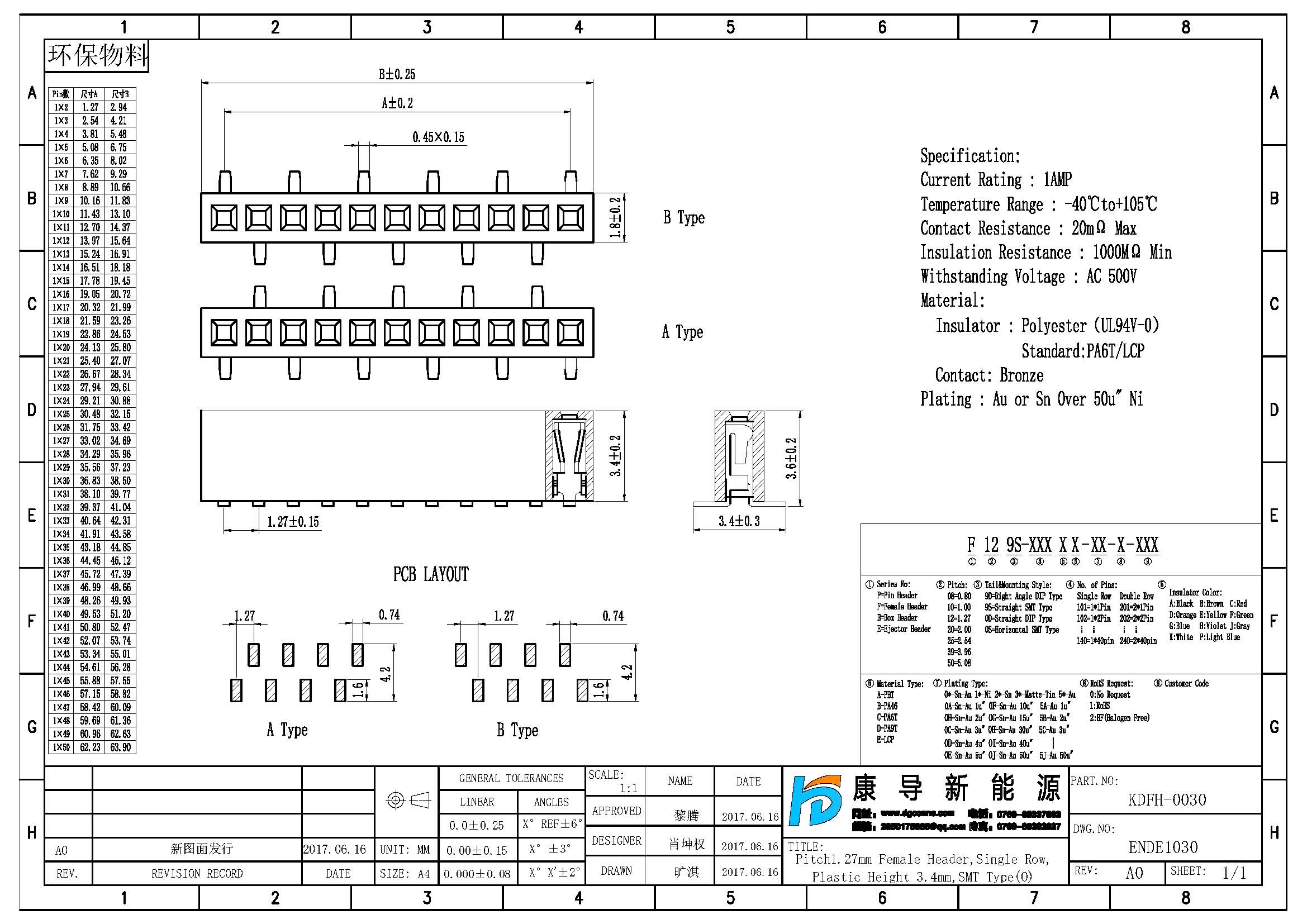 規格型號:FH:1.27MM H:3.4MM 1*NP SMT O端錯位貼