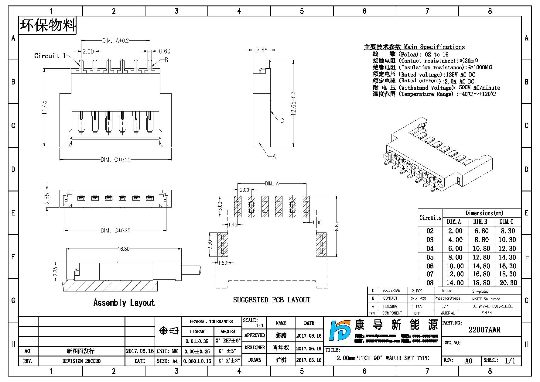 規格型號:PH:2.0MM H:2.75MM 1*NP 臥貼
